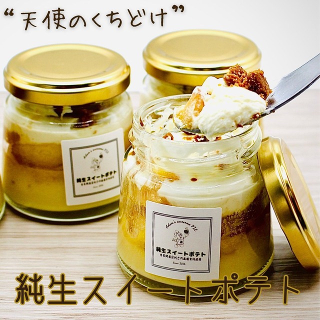 【圏央道の宝物グランプリ】スイーツ部門 グランプリ 【にっぽんの宝物グランプリ】新体験スイーツ部門 審査員特別賞 老舗八百屋が厳選した紅はるかと旬のりんごを使用。規格外でも味が良い傷物やサイズが不揃いな素材を上手く利活用しています。最下層はねっとりとした食感を残し仕上げたスイートポテト。次の層はリンゴを煮詰めキャラメルにしてアクセントに。上部にはマスカルポーネクリームとシナモンクラムを乗せてアクセントにしています。その口当たりはまさに「純生」。なめらかで濃厚でありながら素材の味も活かした商品です。(3個入り)